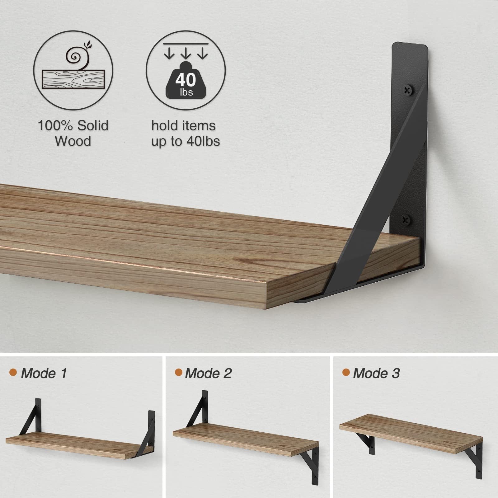 Amazon Com Rustic Floating Shelves Wall Mounted Set Of 3 17 Inch Natural Wood Wall Shelves Decor Storage Shelf For Bedroom Bathroom Living Room Office Pictures Plants Books Cats Tv Rustic Brown